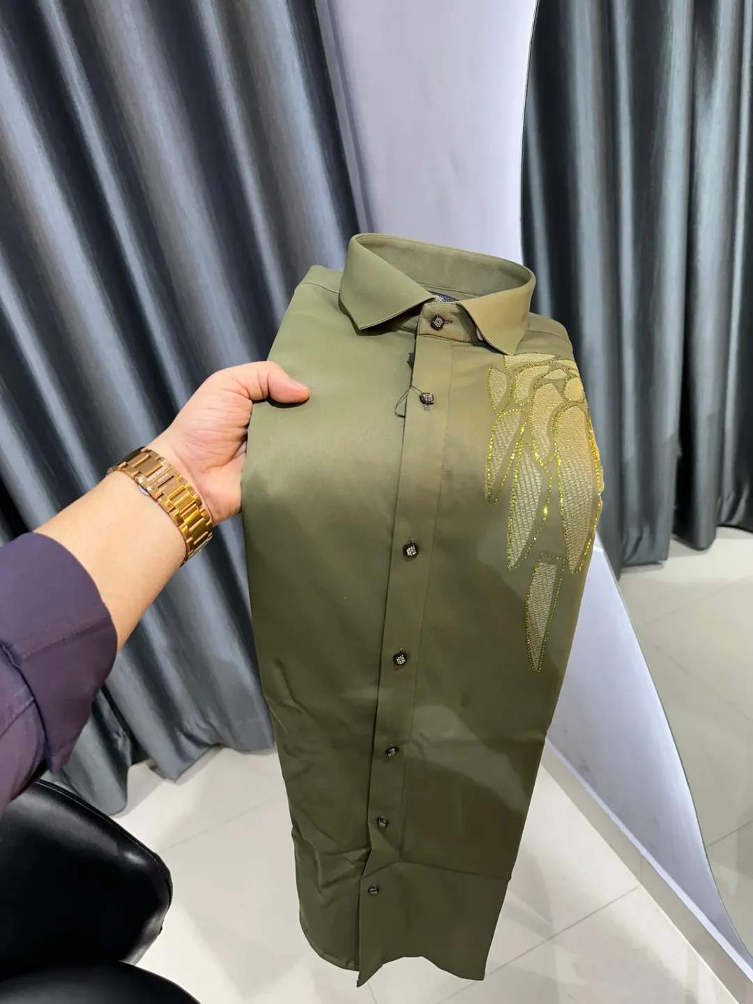 Command attention with this bold black designer shirt featuring a gold-embroidered tiger motif. Perfect for parties, club nights, or premium evening looks โ crafted for men who love standout luxury.